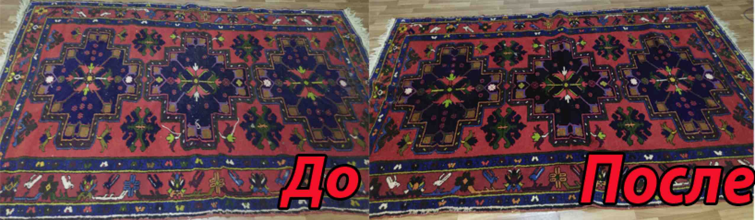 Преимущества услуги с вывозом в цех – глубокая чистка с двух сторон и более качественная сушка. В производственных условиях есть возможность провести деликатную обработку органическими растворителями, что принципиально важно для изделий со смешенным составом волокон или сотканных вручную. После проведения полного цикла работ он станет чистым, ворс мягким, краски яркими, а запах свежим.